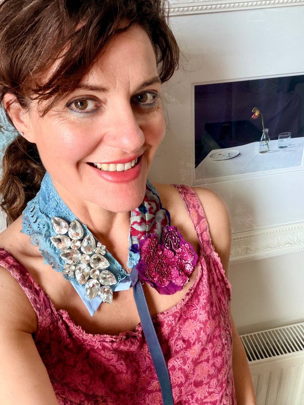 Cotton, hand embroidery, silk, rhinestones, Victorian lace hand dyed
